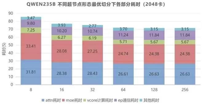 图3 Qwen3-235B不同超节点形态最优切分下各部分耗时