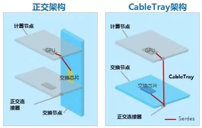 传统GPU集群依赖Cable Tray线缆架构,存在信号损耗大、算力密度低、运维难度高、组网成本高的明显短板,这也是制约多GPU协同效率的物理层关键问题。