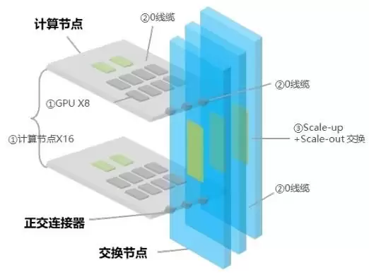 拓扑架构从点对点升级为大规模全对等互联,适配数十到数百颗GPU的协同计算;