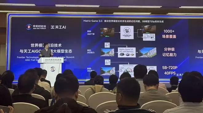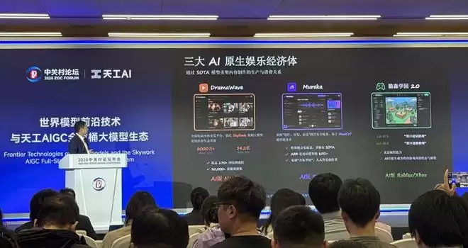 智东西3月27日报道,今日,在2026中关村论坛“人工智能主题日”现场,昆仑万维旗下天工AI集中发布了其最新的“AIGC全家桶大模型”。其中包括:游戏世界模型Matrix-Game 3.0、视频生成模型SkyReels V4、音乐生成模型Mureka V9,以及面向创作者的一人公司操作系统Skywork Super Agent。目前,游戏、视频与音乐三大模型均跻身世界第一梯队。
