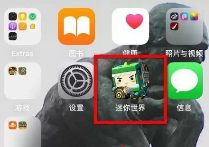 1.点开手机屏幕,点开迷你世界”App,进入游戏。