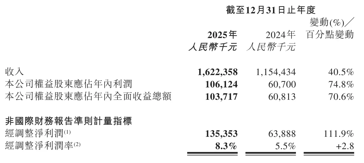 经营效率指标方面,同店单店日均订单量稳定在432个,同店销售额实现1%的温和增长。更值得关注的是盈利能力的大幅提升:全年净利润达1.06亿元,同比增幅74.8%;经调整后净利润跃升至1.35亿元,同比激增111.9%;经调整净利率从5.5%提升至8.3%,较上年优化2.8个百分点,反映出企业成本控制与运营效率的显著改善。