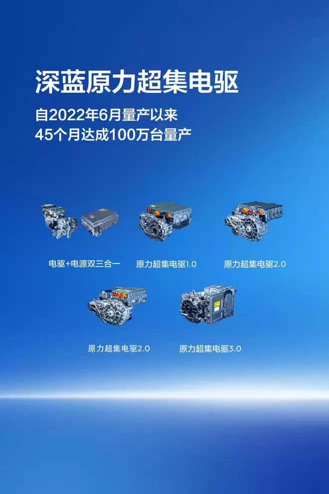 深蓝汽车不断攻克技术壁垒,历经多代电驱研发,带给用户超级省、超级爽、超级静谧、超级安全的全新价值体验。