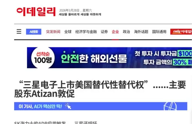 【环球网财经综合报道】近期,韩国存储芯片行业掀起赴美上市热潮。继SK海力士本周正式提交美股存托凭证(ADR)上市申请后,三星电子大股东公开发声,力促三星效仿同行,启动相关上市计划,估值修复成为此次韩系芯片巨头出海融资的核心诉求。