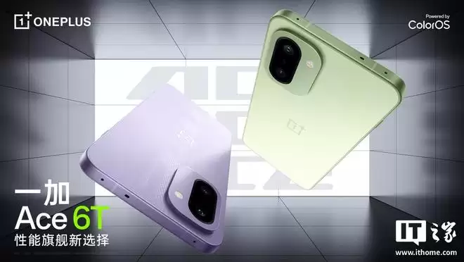 而一加 Ace 6T 则是发布于去年 12 月,首发搭载高通骁龙 8 Gen 5 处理器,配备 6.83 英寸 165Hz 高刷屏幕,标配 3D 超声波指纹,全球首发 8300mAh 冰川电池,兼具 100W 超级闪充,配有 LPDDR5X Ultra 内存 + UFS 4.1 存储,行业首发《和平精英》原生 165Hz 高刷新帧率模式,标价 2599 元起。