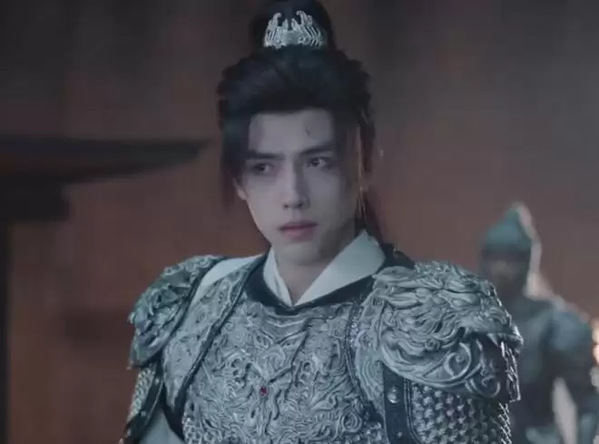 段胥身穿银色盔甲、率领一众兵将踏马而来,脸上还带着肃杀之气。
