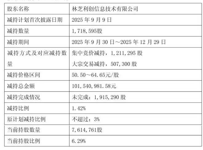 腾讯旗下林芝利创在2025年9月30日到12月29日继续减持星环科技,减持比例为1.42%的星环科技股权,套现超过1亿元。