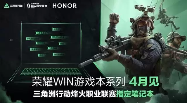三角洲行动烽火职业联赛指定笔记本!荣耀WIN游戏本定档4月发布