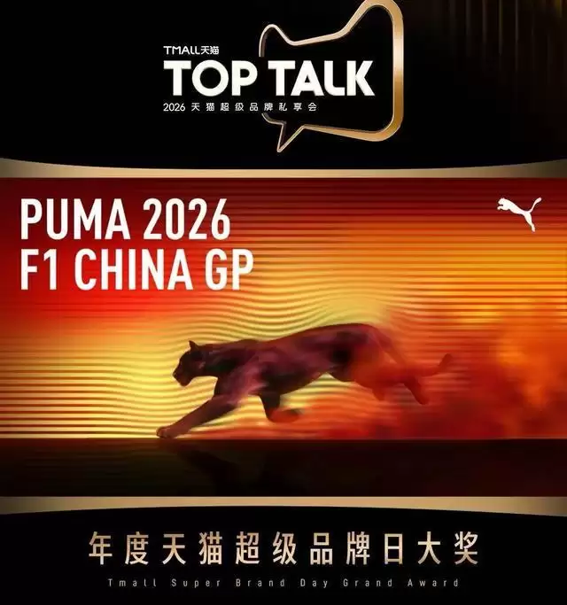 3月26日,2026天猫超级品牌私享会在上海举行。国际知名运动品牌彪马凭借在F1中国大奖赛期间持续攀升的品牌力、产品力和渠道力,荣获“年度天猫超级品牌日大奖”。彪马在本届F1中国大奖赛期间携手天猫超级品牌日打造了系列赛车主题快闪空间。