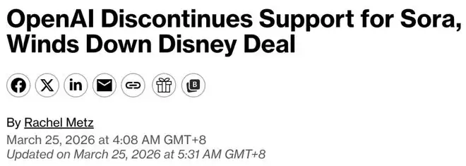 与Claude火到需要限流形成鲜明对比的,是在同一周,OpenAI宣布停止支持独立Sora应用。