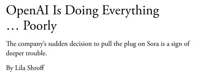 然而,就在前两天,美国《大西洋月刊》发表了一篇评论,言辞犀利地批判「OpenAI什么都在做,但什么都做不好」。