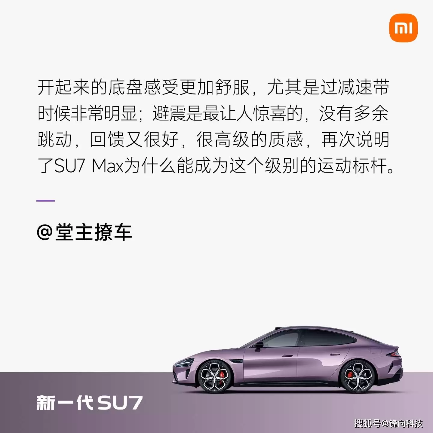 在高速驾驶体验方面,小米新一代SU7同样表现出色。有媒体评价其高级感较上一代更强,高速过大的颠簸时车身非常稳定,直线加速度稳定性极佳,无论是轮胎的抓地力还是车辆的直线循迹性都堪称优秀,充分展现了小米汽车出色的驾控能力。