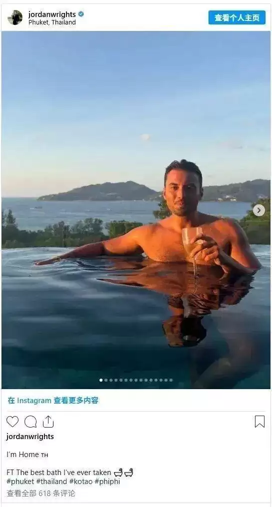 乔丹·赖特的最后一条社交动态停留在3月6日,照片中他身处无边游泳池中,手拿一杯葡萄酒,配文“我回家了”,俨然将普吉岛当作了自己的第二故乡。谁也未曾想到,这份美好会在短短几天后戛然而止。