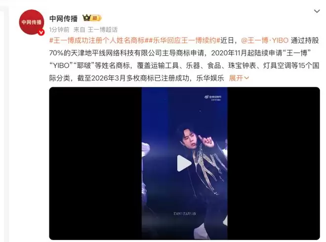 3月27日,王一博在与乐华娱乐官宣续约后,同步更新微博昵称与认证,引发全网热议。