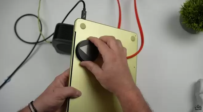 ETA Prime 所用的水冷系统原本为智能手机设计,依靠电力与冷却液协同,为对接设备的硬件降温。该散热器配有磁吸底座,可吸附在手机后盖,为内部元件散热。针对 MacBook Neo,博主将磁吸底座精准贴合在系统级芯片及改装的铜垫片上方。如果没有铜垫片改装,这套水冷方案几乎无法生效 ——MacBook Neo 原装石墨烯散热片仅与 A18 Pro 芯片接触,无其他导热通路,这也是芯片频繁降频的核心原因。
