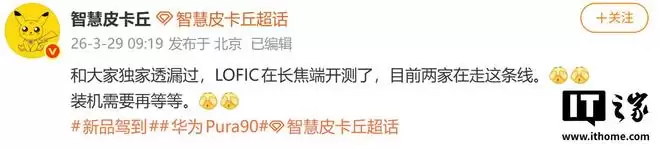 IT之家 3 月 29 日消息,博主 @智慧皮卡丘 今天在微博透露,目前已有两家厂商在测试长焦端 LOFIC,装机还需要再等等。