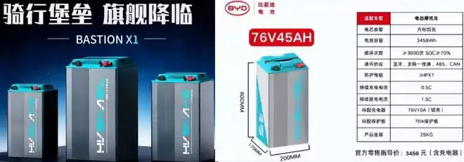 我们来看看 具体参数, 此次上市的“骑行堡垒”系列,核心为X1 Pro产品线,覆盖了64V 33 Ah、64V45Ah、76V45Ah、76V96Ah等多种主流规格,适配市面上绝大多数电摩及三轮车型。