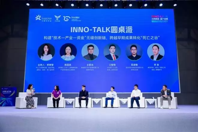 随后的INNO-STAGE分享环节,光明实验室、鸟山鸣科技、上德(深圳)数据、华夏银行等优质项目和服务产品轮番登场亮相,展示了从技术到产品、从产品到金融支持的多样可能。在“INNO-TALK圆桌派”上,来自中山大学·深圳、深圳理工大学、深天使等产业界、投资界、学术界的嘉宾们,围绕如何跨越科技成果转化的“死亡之谷”展开深度对话,针对“技术-产业-资金”的无缝衔接贡献真知灼见,进一步推动科技创新和产业创新深度融合。