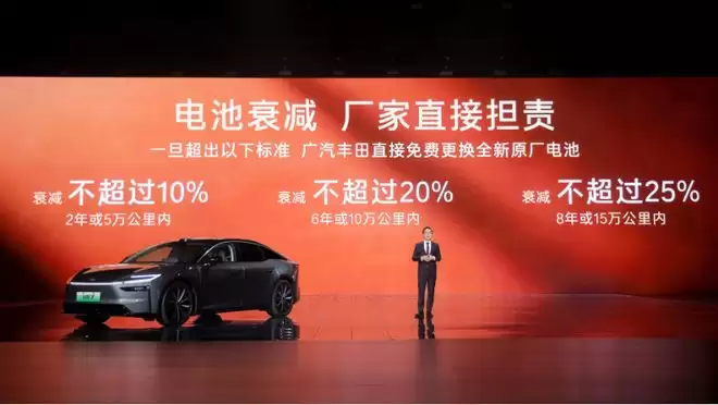 基于这套体系,广汽丰田也给出了明确承诺:电池衰减在 2 年或 5 万公里内超过 10 %、6 年或 10 万公里内超过 20 %、8 年或 15 万公里内超过 25 %,厂家直接担责,并可免费更换全新原厂电池。