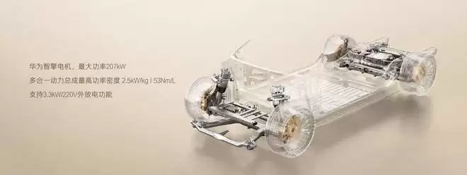 动力部分,铂智 7 采用华为 DriveONE 双电机电驱系统,最大功率 207 kW,最高车速设定为 180 km / h。电池则提供 88.13 kWh 和 71.35 kWh 两种规格。
