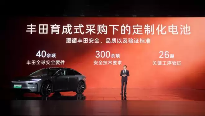 具体来看,广汽丰田采用了「育成式采购」模式。工程师会提前 2 年反向进驻电池厂,围绕铂智 7 的电池提出超过 300 项安全标准,并验证 26 道关键工序,尽量确保每一个零部件、每一道工序都达到丰田全球标准。
