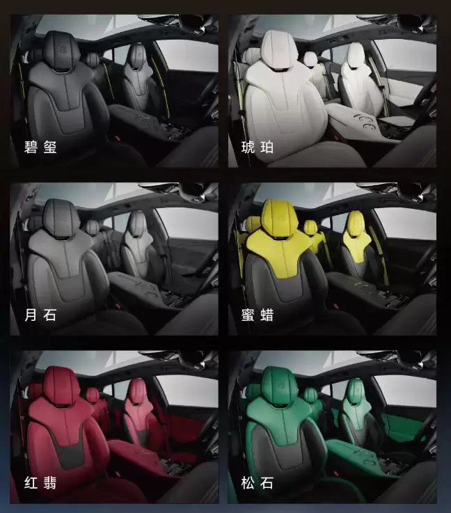 座舱方面,该车提供碧玺、月石、红翡、琥珀、蜜蜡、松石内饰配色,5+2 屏幕环绕座舱,搭载英国殿堂级 KEF 音响以及 4 区空调。