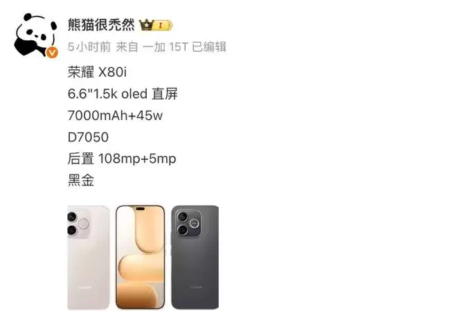 今天,博主@熊猫很禿然 的一份爆料中又提到了一款被称为“荣耀 X80i”的手机新品信息。