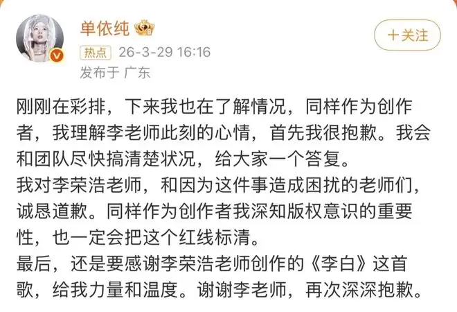 #李荣浩单依纯版权之争 #李白翻唱争议