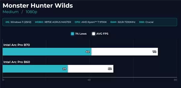 Intel锐炫Pro B70游戏首测:32GB大显存加持,性能较B60提升45%