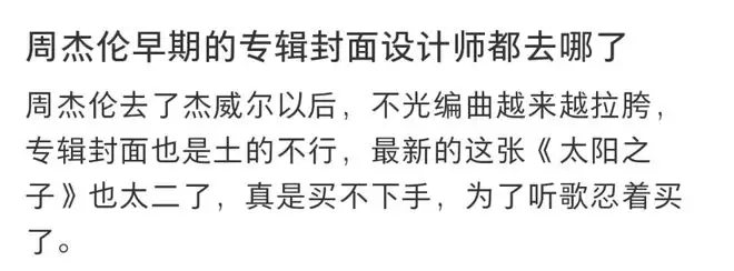 遭到网友吐槽:“中年周杰伦怎么离不开欧洲古堡风了?”,更有人直言封面满是 “老登味”,缺少了年轻时的灵动锐气与新意,还有人说以前是公司审美,现在是周杰伦自己的审美。