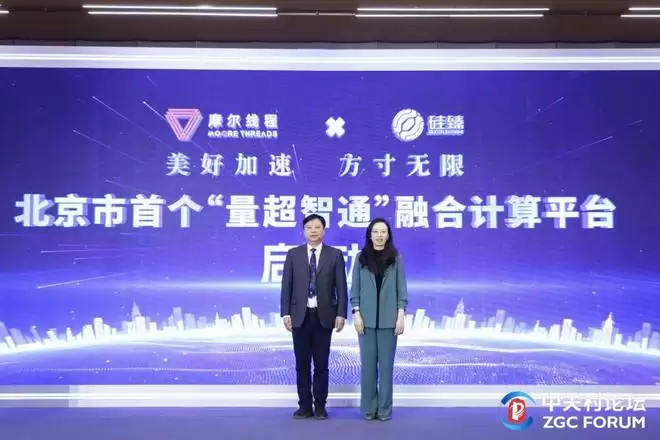 论坛期间,在北京市和海淀区两级政府支持下,摩尔线程与光量子计算企业硅臻联合推出北京首个“量超智通”融合计算平台。该平台以摩尔线程新一代GPU和硅臻的量子计算机为双核心支撑,构建起“量超智通”融合算力底座,打破了经典算力与量子算力的技术壁垒,从核心芯片到应用软件实现全链条自主可控。