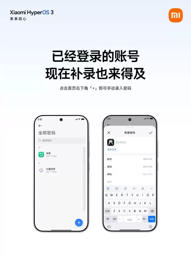 小米碰碰OS3密码App首发:登录自动获取存储,支持跨设备同步