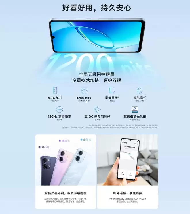 IT之家从商品页面了解到,这两款手机均配备 6.74 英寸 LCD 屏幕,支持 120Hz 高刷,HBM 最高亮度可达 1200 尼特,分辨率 1600*720,触控采样率 120Hz/180Hz/240Hz,覆盖 83% NTSC 色域,屏占比 90.40%。