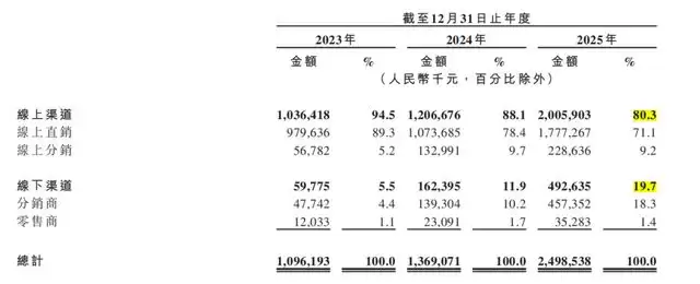 翻开招股书,2025年营收近25亿、毛利率常年稳定在70%左右,表面看数据亮眼,但背后也有隐忧浮现:高度依赖广告营销与第三方电商平台,2025年销售及分销开支占比超61%,线上渠道收入占比高达80.3%。