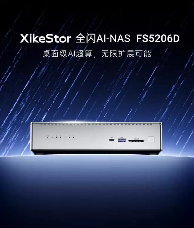 IT之家 3 月 30 日消息,兮克 XikeStor 上周末推出了全闪存 AI NAS 新品兮甲云 FS5206D。这一产品基于英特尔酷睿 Ultra 7 255H 处理器,具备 6 个 M.2 NVMe SSD 盘位、OCuLink、双万兆电口。