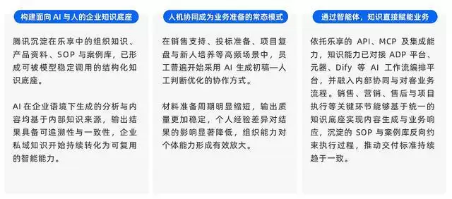 在实际业务中,这一能力已带来明显成效。以腾讯内某营销团队为例,该团队每月产出40至50份高质量材料,但长期面临“内容沉淀多、使用率不高”的难题。引入乐享AI知识库后,员工将大文件、长视频等交由AI解析,销售人员只需简单提问,AI即可秒级匹配信息,信息获取效率提升超10倍。