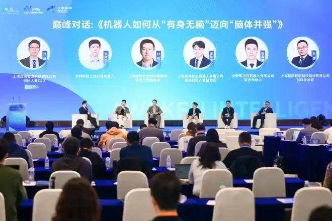 巅峰对话由灵境智源创始人兼 CEO 孙博主持,宇树、傅利叶、零次方、擎朗、浩海星空等企业代表以「机器人如何从『有身无脑』迈向『脑体并强』」为主题,探讨了本体与智脑协同演进的产业化路径。