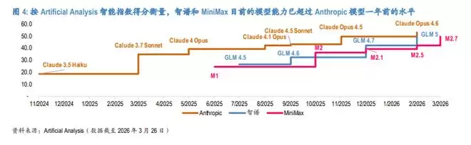模型迭代方面,预期节奏约为每年推出一代旗舰模型(如GLM 4.7到GLM 5,MiniMax M2系列到M3系列),中间伴随强化学习驱动的小幅升级,停止迭代意味着失去竞争地位。