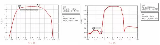 应用于卫星通信接收频段,插入损耗低至1.5dB,对于发射端1668-1675MHz的抑制高达60dB,耐受功率30dBm。