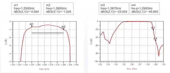 此款产品采用温度补偿(TCF)结构,温度漂移系数在±5ppm/℃以内,大大降低了滤波器在高低温下的温度漂移,从而保证产品具有高滚降,高邻带抑制等特性。