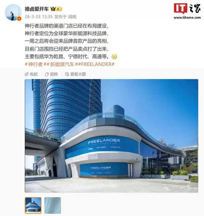 IT之家 3 月 30 日消息,奇瑞汽车与捷豹路虎联合打造的全新品牌“FREELANDER 神行者”将于明日(3 月 31 日)正式发布,届时该品牌首款车型将同步亮相。