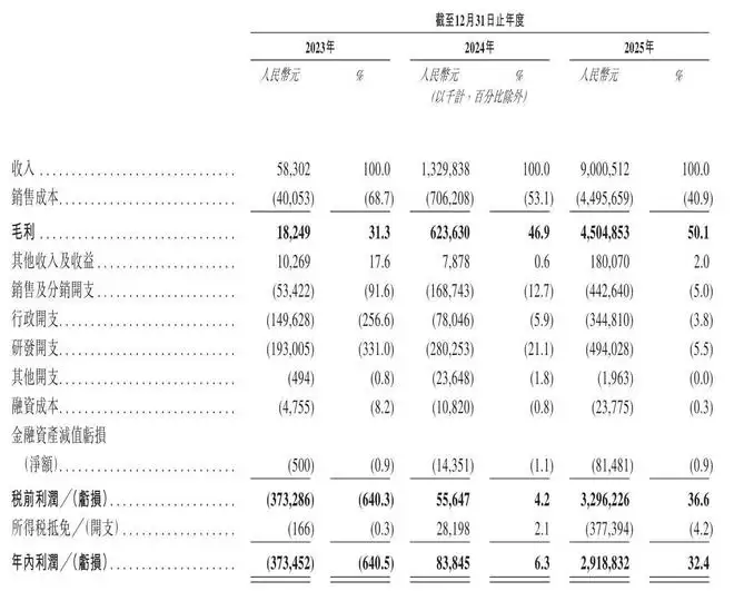思格新能源2024年、2024年、2025年利润为-3.73亿、8384.5万、29.19亿元;年内利润率分别为-640.5%、6.3%、32.4%。