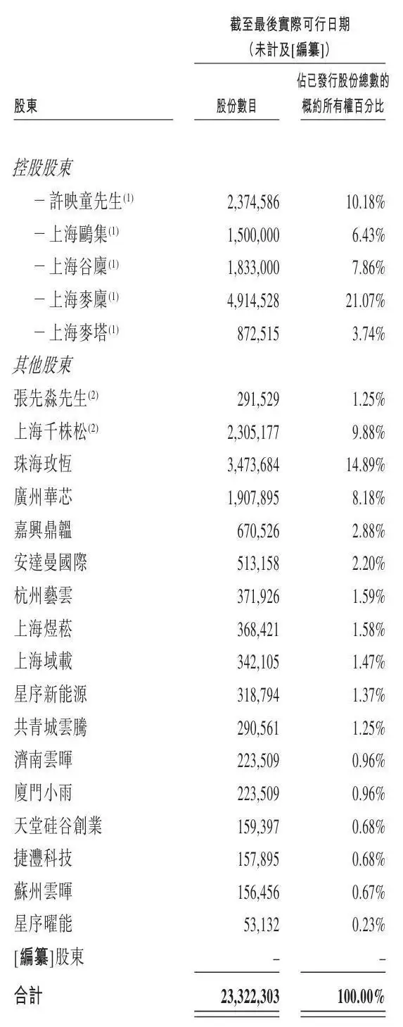 IPO前,许映童直接控制约10.18%的股权及通过许映童控股实体(即上海鸥集、上海谷廪、上海麦廪及上海麦塔)间接控制约39.10%的股权。