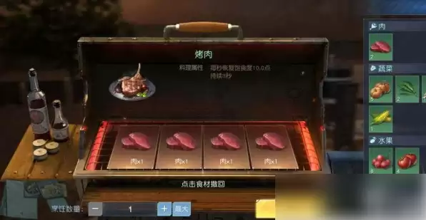 4、玩家可以多准备一些烤肉,玩家尽量选择4块肉制作的烤肉。