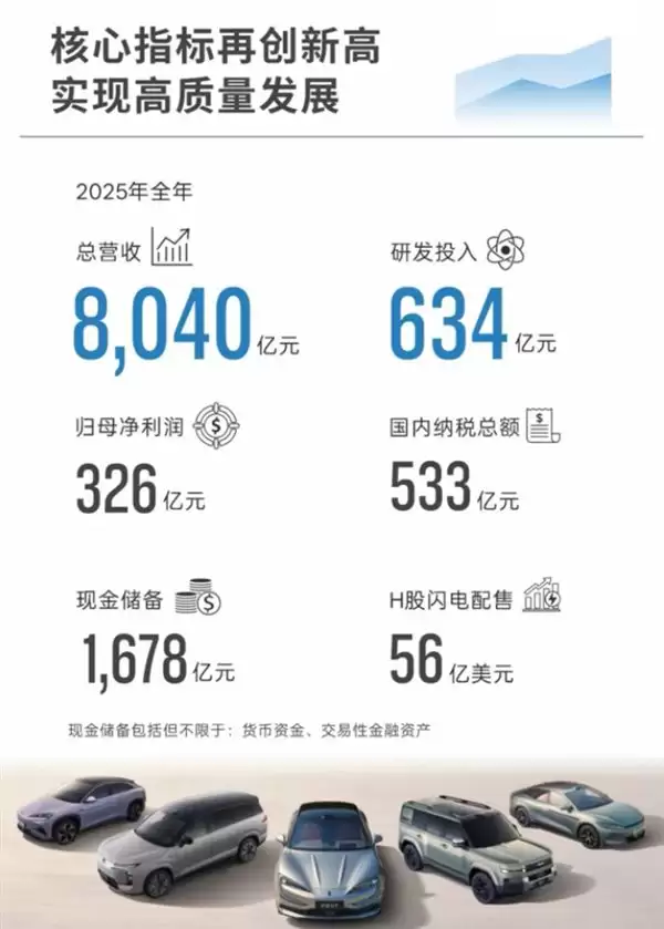 全年营收突破8040亿元,净利润326亿元,销量冲到460.24万辆,直接拿下全球新能源销冠、中国市场销冠、中国品牌销冠三项大奖,同时首次挺进全球车企集团前五。
