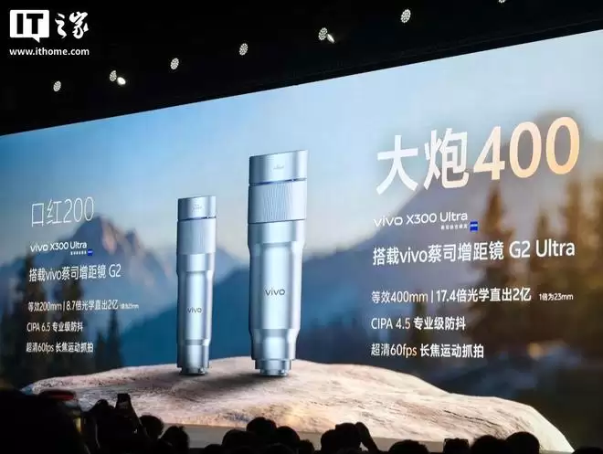 此外,vivo X300 Ultra 手机还拥有「口红 200」增距镜和「大炮 400」增距镜:
