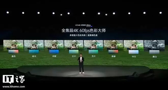 色彩大师:基于 vivo 色彩科学的全自研视频色彩影调管线,在成像更前端介入色彩调节,依托原始 RAW 丰富信息精准映射,色调过渡更平滑,画质无损;准备多款高质量视频色彩风格预设,全部支持全焦段 4K 60fps 录制,还可叠加杜比视界 HDR,并支持深度自定义调节。