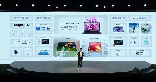 除了手机新品,vivo发布了vivo Pad6 Pro平板新品,搭载了据称行业首款4K原彩屏,支持4K视频创作,X300 Ultra拍的视频可以直接用Pad6 Pro剪辑。