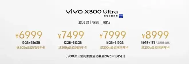 12GB+256GB 版本6999 元、12GB+512GB 版本7499 元、16GB+512GB 版本7999 元、16GB+1TB 卫星通信版8999 元。