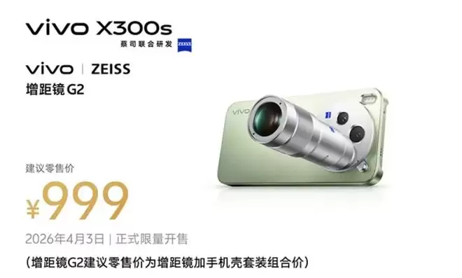 vivo蔡司增距镜 G2,售价999元,可适配X300 Ultra和 X300s。